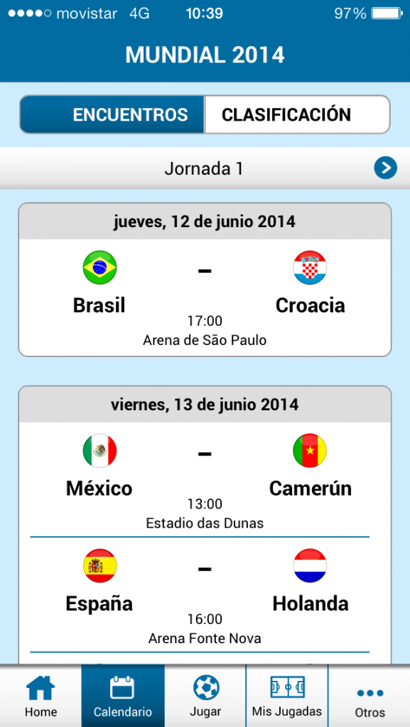 Aplicación iPhone de resultados y recompensas del Mundial de Futbol 2014